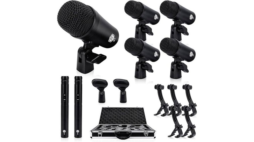 The W IN-MIX G7 Drum Mic Kit stands as a demonstration to the harmonious blend of technology and artistry—its seven meticulously crafted microphones embody a commitment to sound clarity and precision. Each component, from the robust kick bass mic to the delicate overhead condensers, serves as a reminder that just as music connects us, so too does the thoughtful design of our tools inspire growth and creativity. As we explore its features, one may find that the journey of sound parallels the symphony of life, inviting deeper contemplation.