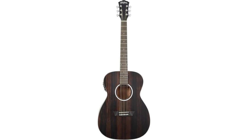 The Washburn Deep Forest Ebony FE resonates with an articulate voice, its striped ebony top, akin to a seasoned soul, offering complex reflection.