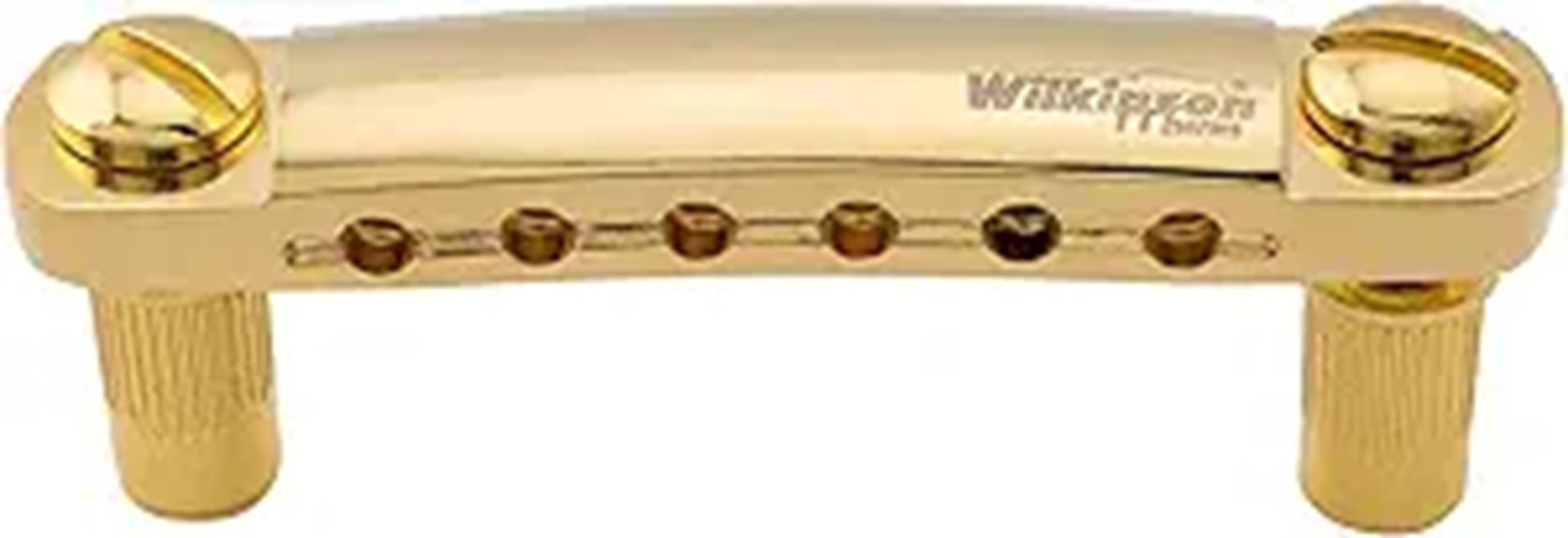 The Wilkinson WOGT1 Tune-O-Matic bridge, with its sturdy zinc construction and gold finish, provides a stable foundation for sonic exploration, anchoring strings much like unwavering principles steady the soul. Its 82mm post spacing guarantees seamless integration with beloved classic models, offering a precise upgrade that serves as a reminder that even small adjustments yield profound resonance.