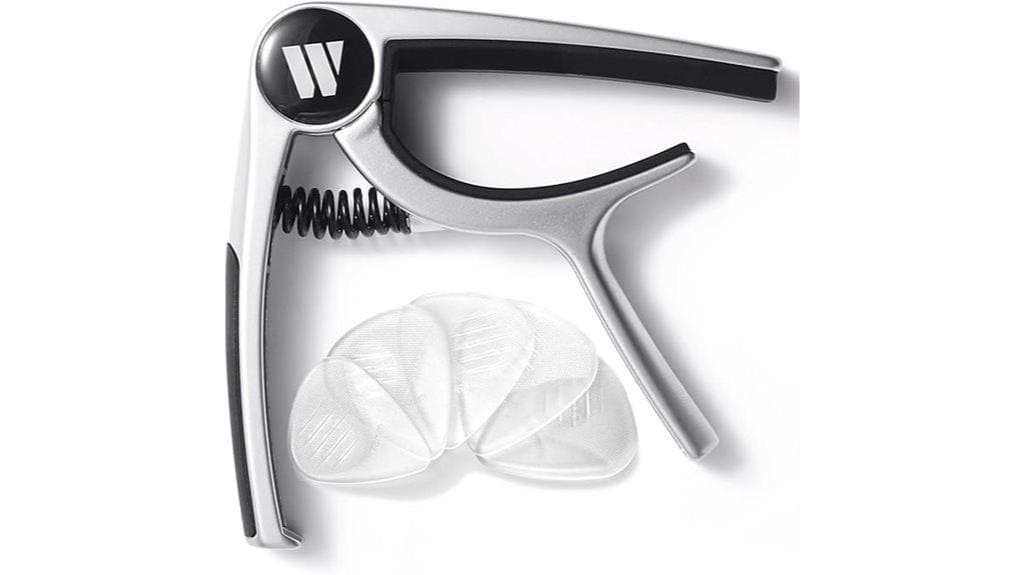 Its quick-release design facilitates effortless key changes, a metaphor for adaptability in life’s rhythms. The balanced pressure it exerts guarantees a clear tone, reminding us that harmony arises from thoughtful intention.