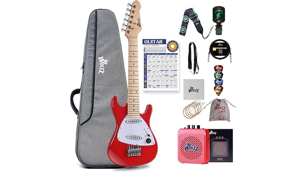 - The Winzz 30 inch electric guitar features a poplar body and maple neck, offering durable, resonant construction ideal for young beginners