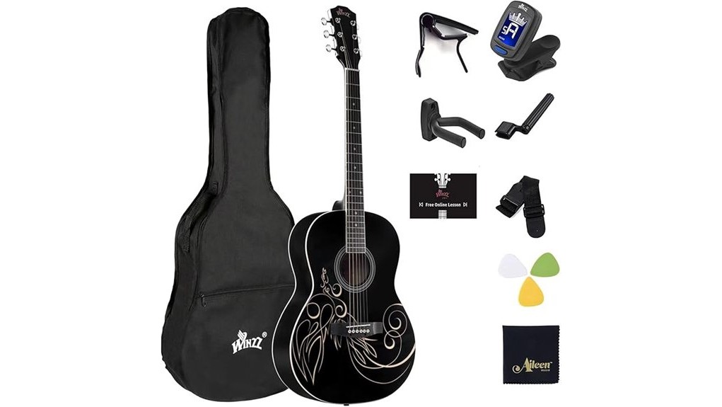 - The purchase includes a 19-piece accessory kit containing a padded gig bag, digital tuner, capo, and instructional lessons.
