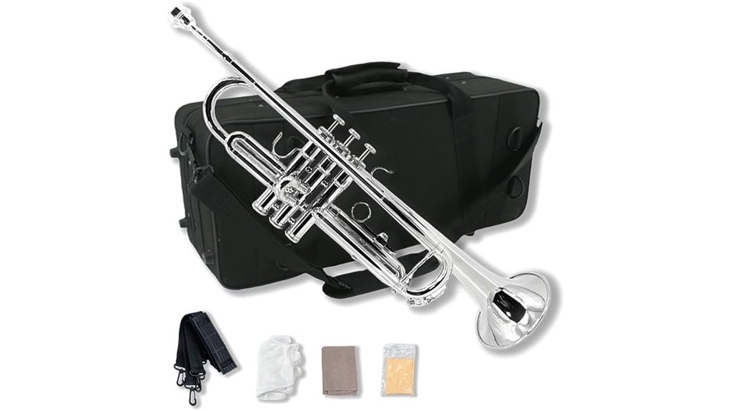The WUQIMUSC Bb Trumpet for Beginners exemplifies a harmonious union of craftsmanship and functionality, crafted from high-quality brass that mirrors the elegance of music itself—a reminder that beauty often lies in simplicity. Its polished finish not only enhances visual appeal but also invites budding musicians to explore their creative potential, akin to the journey of self-discovery. With accessories designed to support growth and a commendable user rating, this instrument becomes a vessel for both technical mastery and personal expression, prompting one to ponder the transformative power of music in their life. What lies ahead in this exploration of sound and spirit?