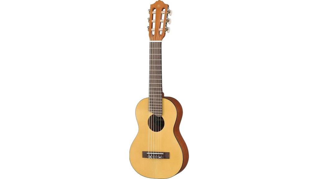 The Yamaha GL1 combines baritone ukulele size with six guitar strings, functioning as a portable instrument tuned up a fourth.